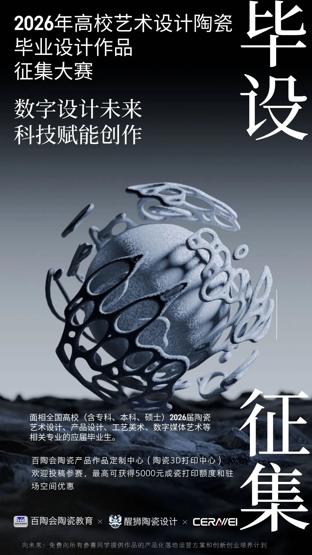 2. 可打印性:作品需具备通过陶瓷3D打印工艺实现的可能性(在创意说明中可阐述如何与3D打印结合)。
